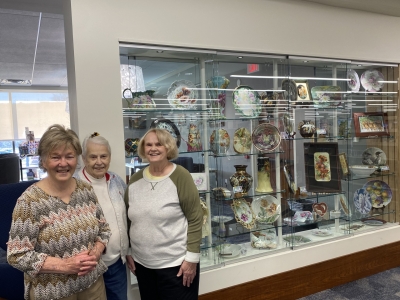 Wisconsin Chapter of World Organization of China Painters have their variations of porcelain painting displayed in the 360 Display Case near the Fireplace Room. This display includes over 50 original pieces.