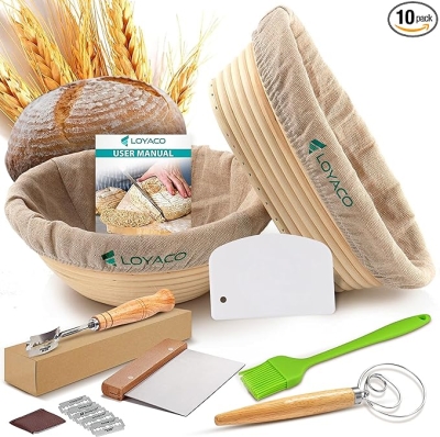 Bread proofing baskets are the perfect size for making sourdough bread. The larger 9 inches round basket is ideal for shaping and rising dough, while the smaller 10 inches oval-shaped basket is perfect for proofing dough. This set comes with everything you need to get started baking sourdough bread. The included proofing bowls, bread lame, danish whisk, dough scraper, and oil brush make it easy to shape and rise your dough.